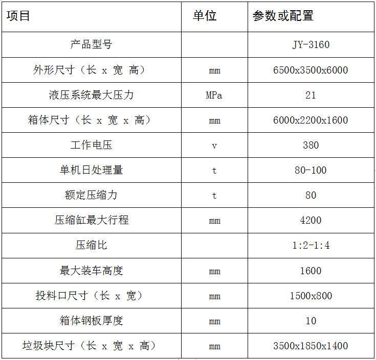 JY-3160 水平式四柱舉升垃圾壓縮設備用于對城鎮(zhèn)居民生活區(qū)、學校、醫(yī)院、公園景區(qū)、廠礦和機關單位的生活垃圾以及固體廢棄物的收集、壓縮減容和封閉轉運。