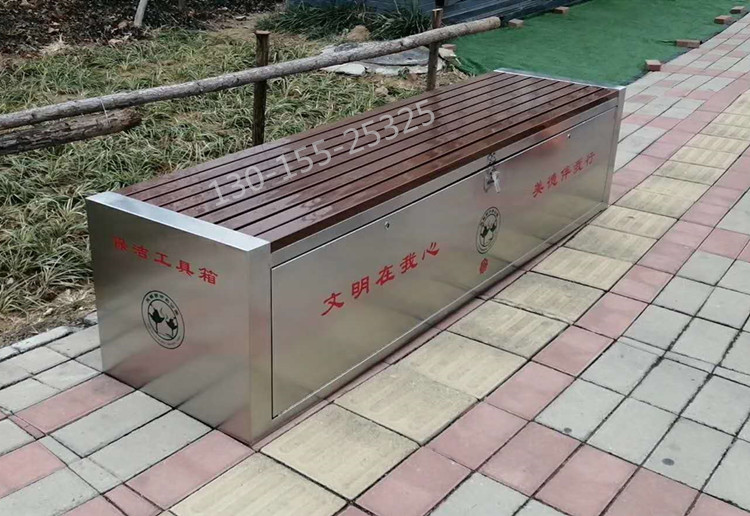 保潔員工具箱座椅是一種新型市政街道存放保潔員和環(huán)衛(wèi)工人工具、用具的多功能箱子,它既是工具箱,也是座椅??梢越o保潔員提供一個(gè)日常休息和放置工具的儲(chǔ)物箱,也可以給路人提供一個(gè)臨時(shí)、短期休息的坐凳。對(duì)保潔員的日常保潔工具的存放和日常用品起到了規(guī)范管理作用,美化城市環(huán)境,提升城市文明。