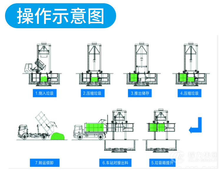 用于垃圾的儲(chǔ)存、壓縮及寄存全部在地面以下,地面上沒有垃圾散落。 采用垂直壓縮方式,壓縮力大,垃圾塊壓實(shí)密度大。